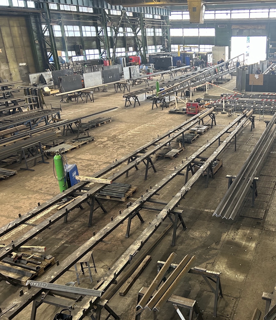 2020-ban indítottuk könnyű és nehéz acél szerkezet gyártó üzletágunkat vállalati megrendelőink számára. Jelenleg két (4600+600 m2); 5-8-15-20 tonnás híddaruval felszerelt csarnokban 50 fő hegesztőt és lakatost foglalkoztatva folyik a gyártás.