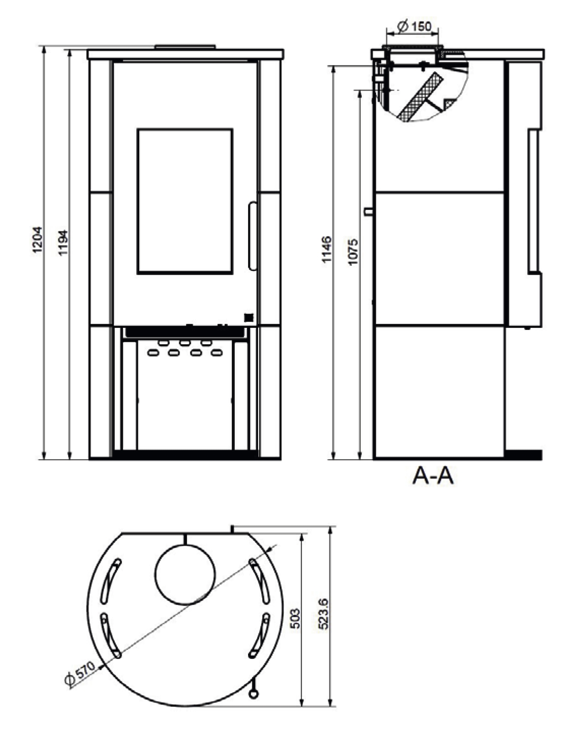 | Hátsó és felső füstcsonkkivezetés (mm) | 150 |